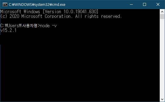 node -v 명령어를 입력하여 노드 버전을 확인함으로써 노드가 올바르게 설치되었는지 확인합니다.