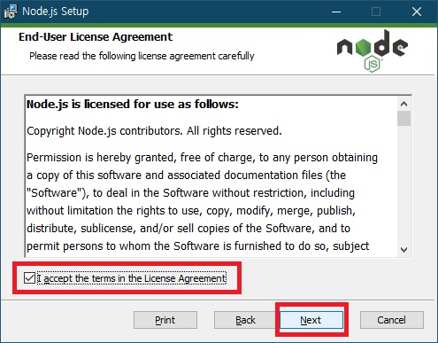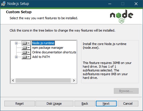 - Add to PATH : 시스템 환경 변수에 추가(명령 프롬프트에서 노드 명령어 사용 가능)