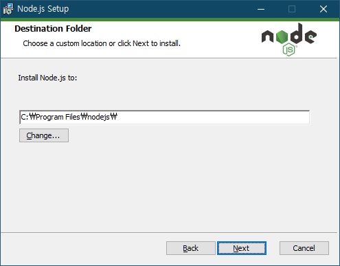 5. Node.js 설치 경로를 지정합니다. (기본 경로 그대로 사용하는 것을 추천)