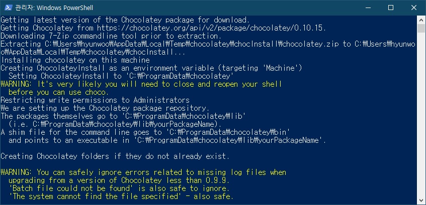 10. 아무 키나 누르면 파워셸 창이 뜨는데, 여기서도 사용자 계정 컨트롤 창이 뜨는 경우 "예" 버튼을 클릭합니다.